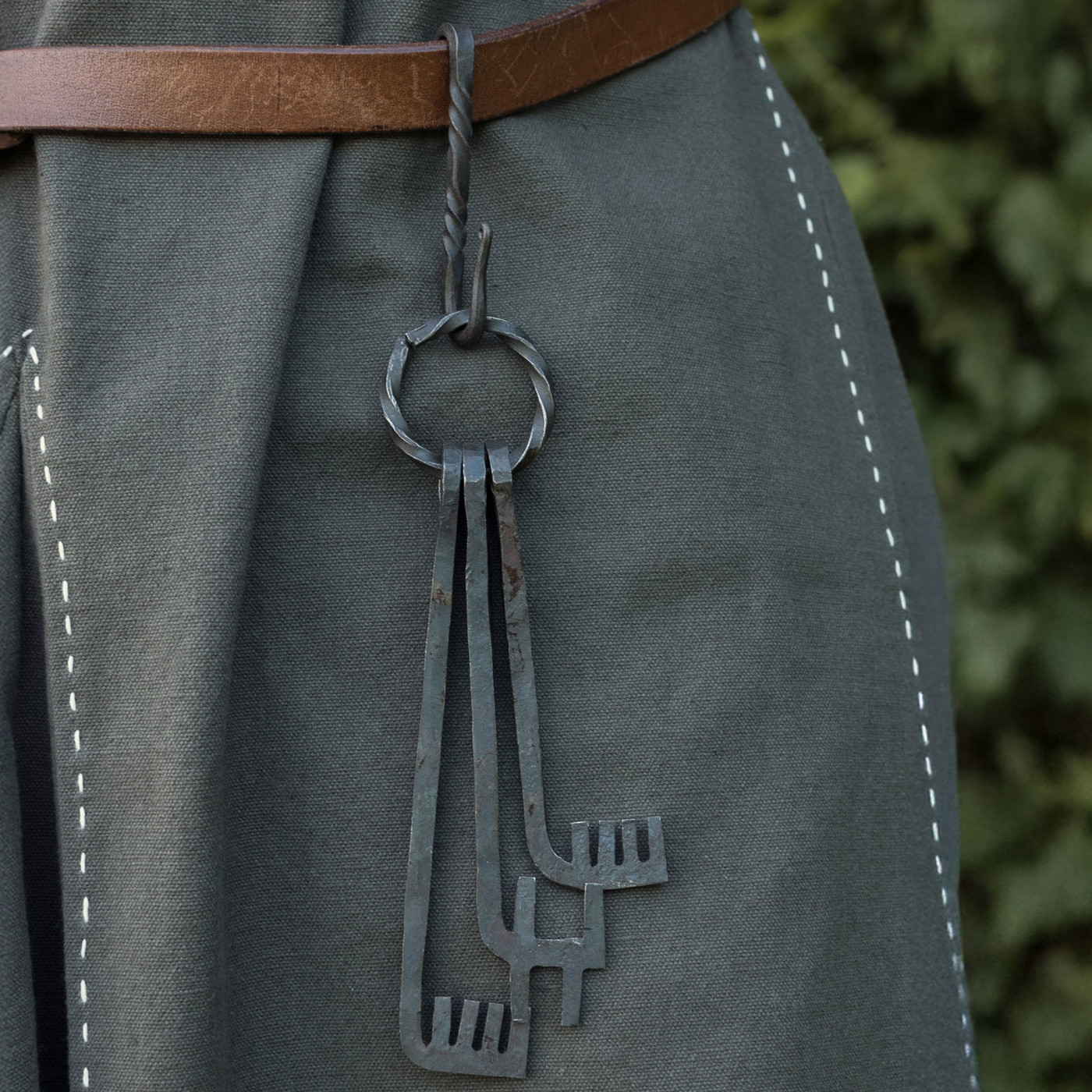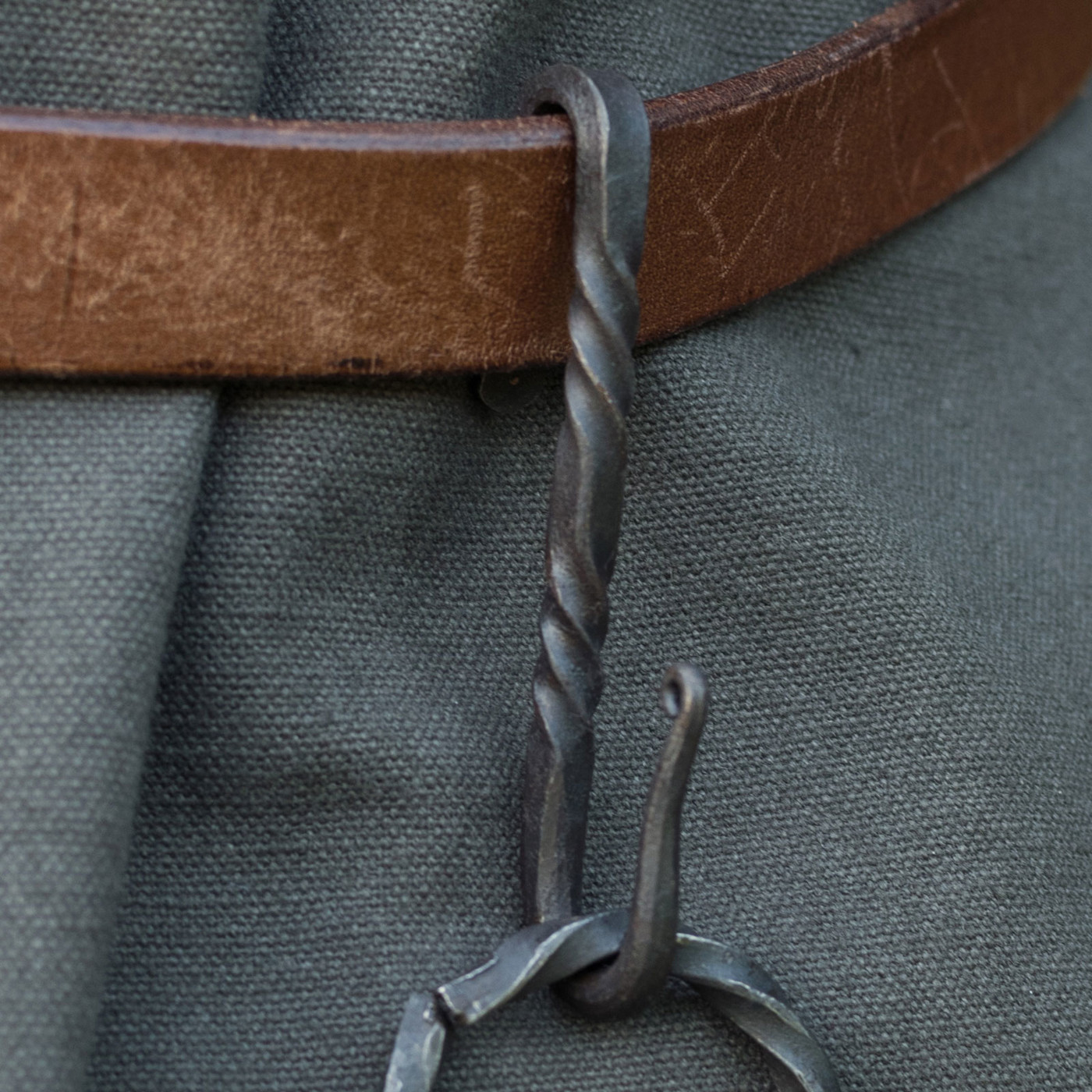 Der Gürtelhaken wird einfach hinter den Gürtel gehakt und durch sein Eigengewicht geklemmt. Ganz ohne Nieten, Schrauben oder moderne Befestigungen. Diese einfache, geniale Konstruktion war über Jahrhunderte hinweg bewährt – praktisch, robust und jederzeit einsatzbereit.