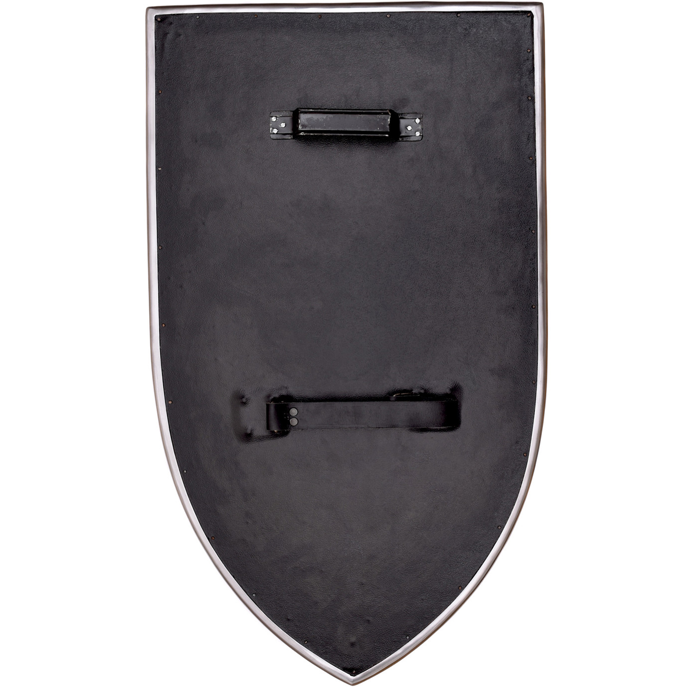Die Form erinnert an sogenannte Wappenschilde / Ritterschilde, wie sie bei Fußsoldaten und Rittern im europäischen Raum verbreitet waren.