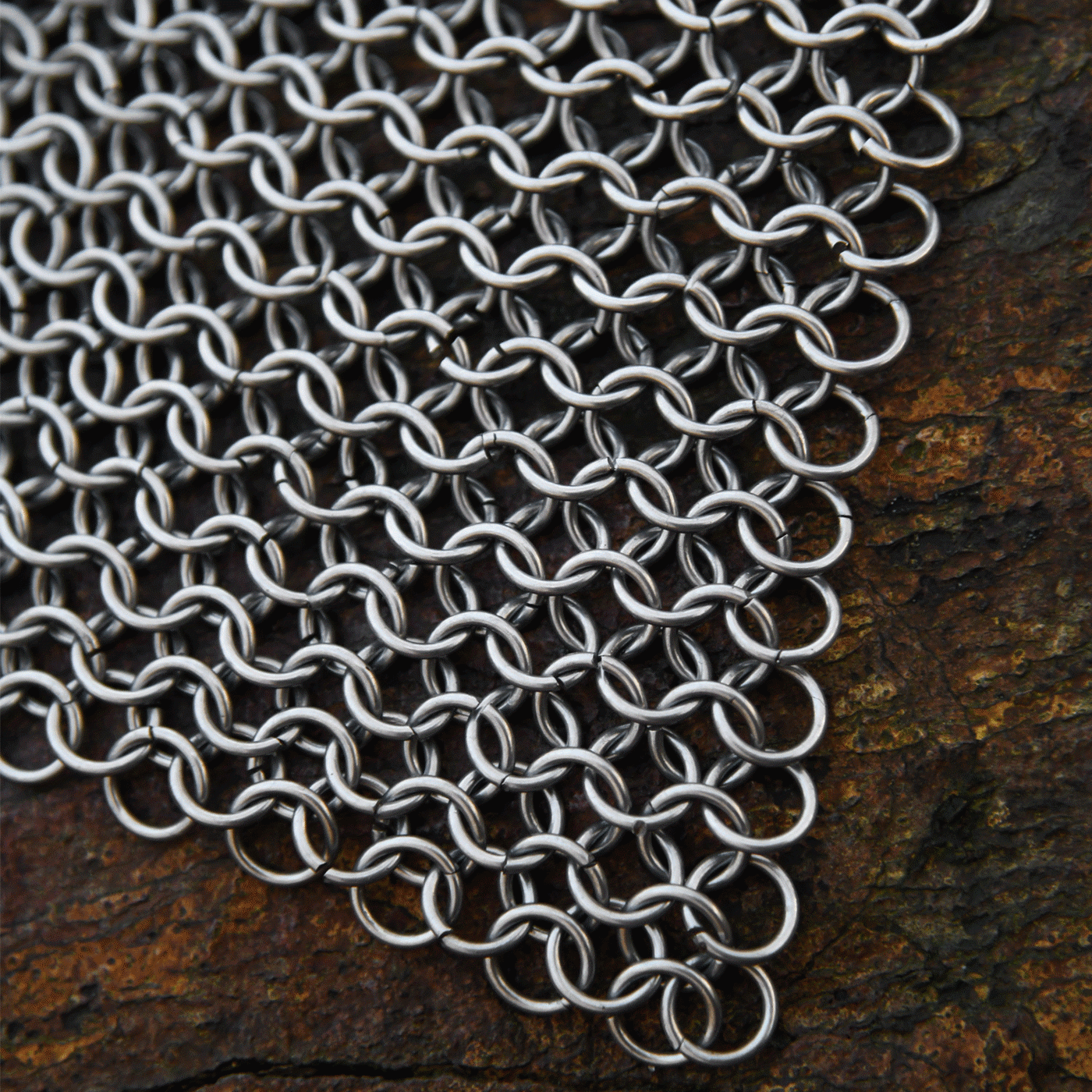 Das Kettengeflecht ist schaukampftauglich und besteht aus hochwertigen Federstahl-Rundringen. Die Flechtung ist 4 in 1 und verleiht dem Geflecht eine solide Qualität sowie einen guten Schutz. Die unvernieteten Kettenringe geben dem Kettenstück ein authentisches Aussehen und sorgen für eine lange Lebensdauer.