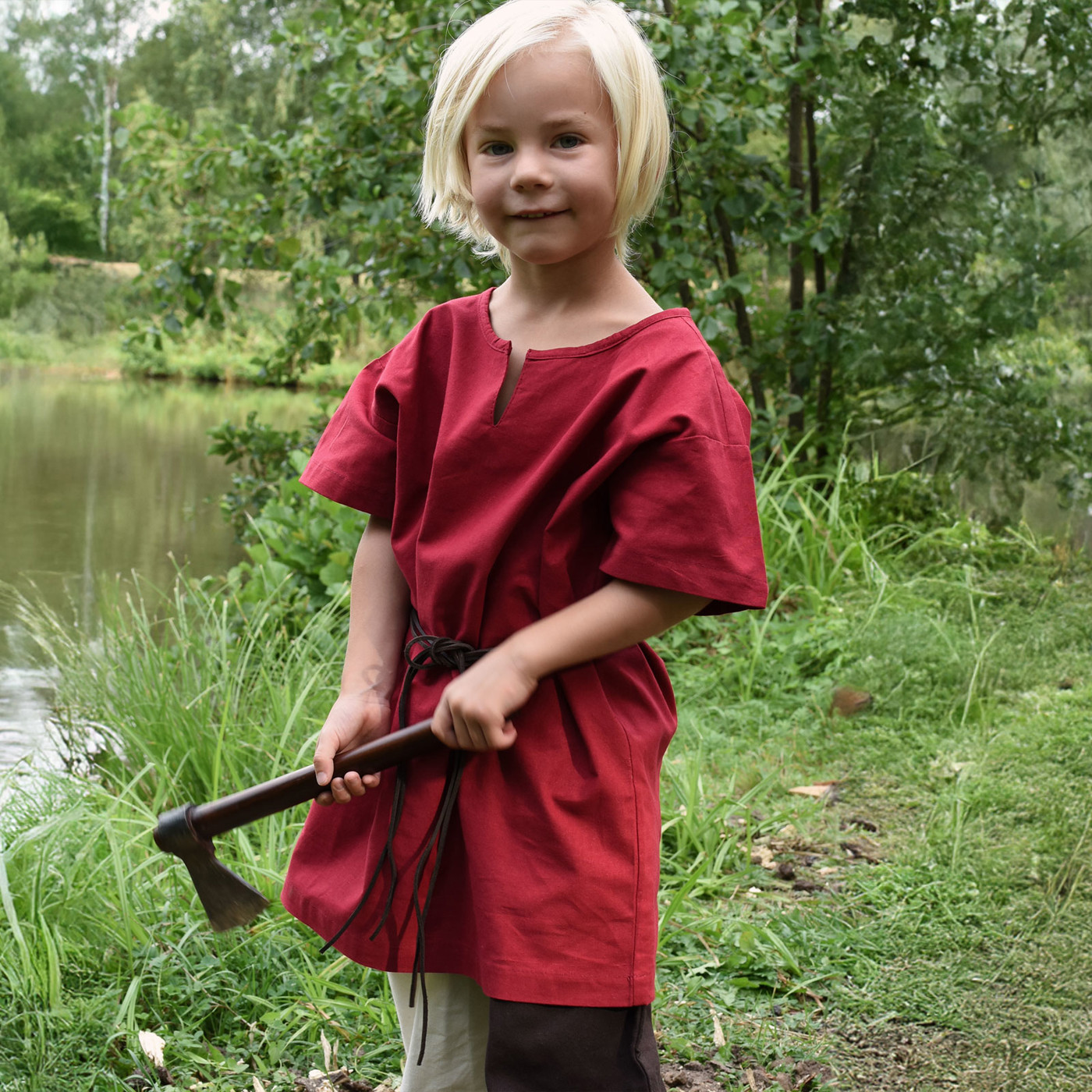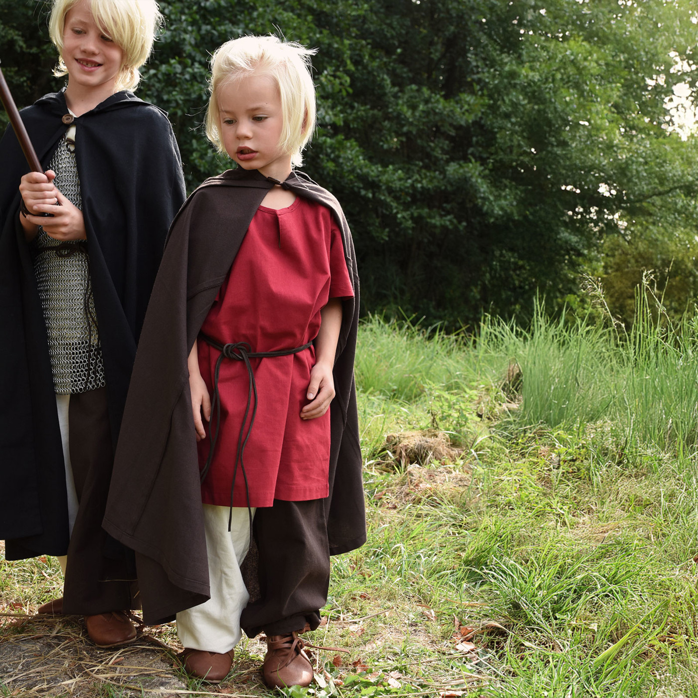 Ob beim Mittelalterfest, beim LARP, auf dem Schulfest oder beim Spielen im Garten – die kurzärmelige Mittelalter-Tunika Linus lässt Kinder in eine vergangene Epoche eintauchen.