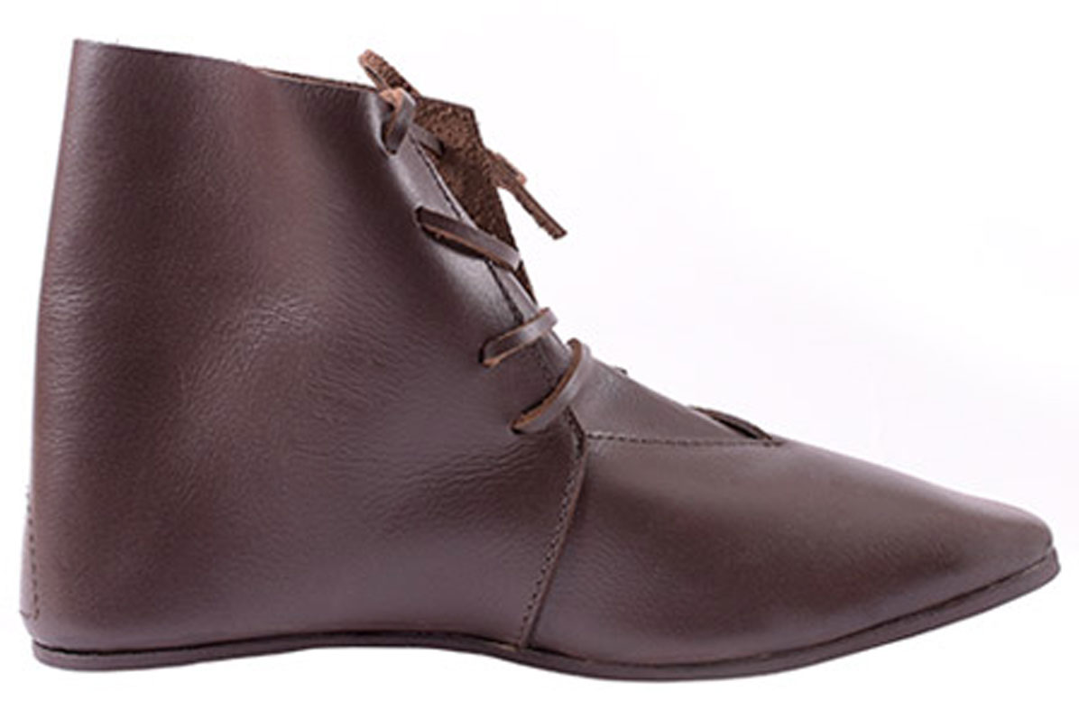 Tauchen Sie ein ins Spätmittelalter mit unseren Schnallenschuhen. Aus robustem Rindsleder gefertigt, authentisches Design mit Messing-Schnallen. Hoch- oder umg…