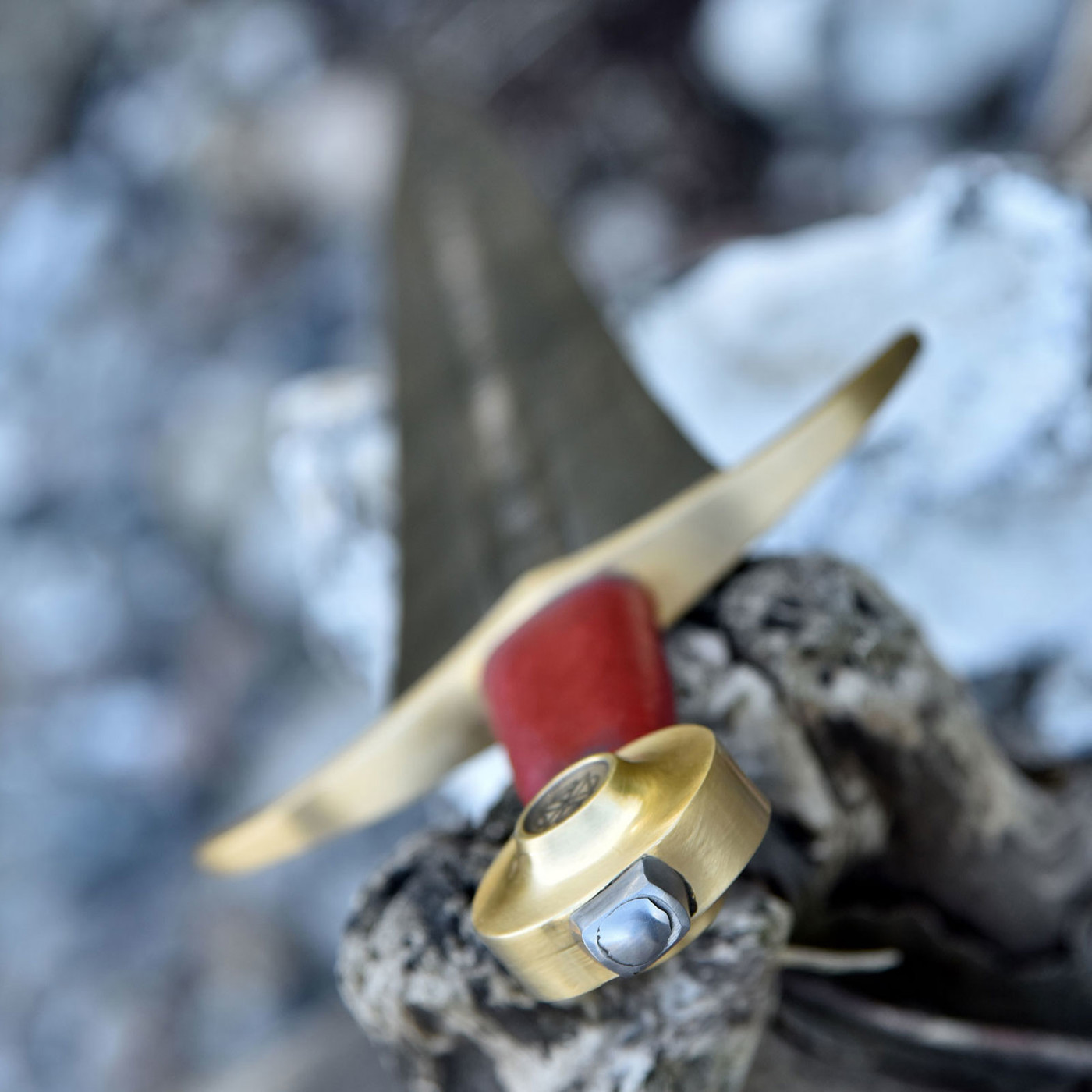 Lieferumfang: Inklusive passender roter Holz-/Lederscheide mit Messingbeschlägen und Trageringen