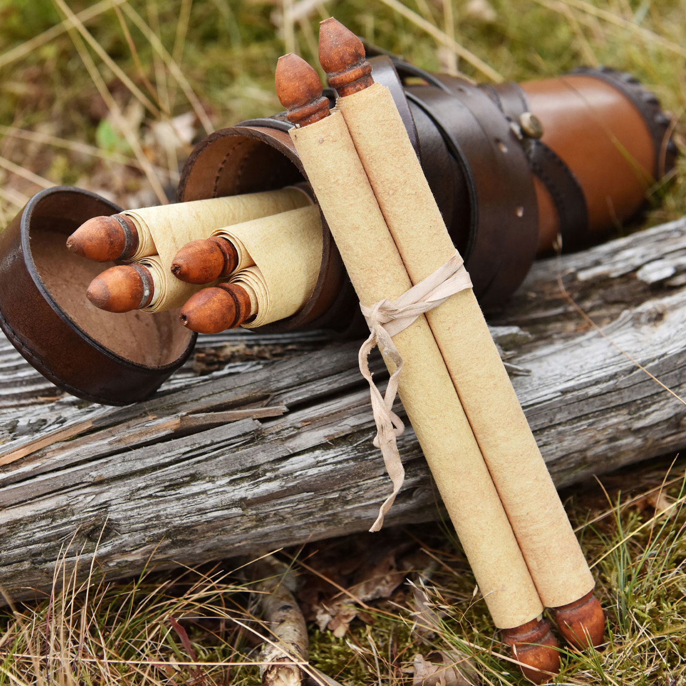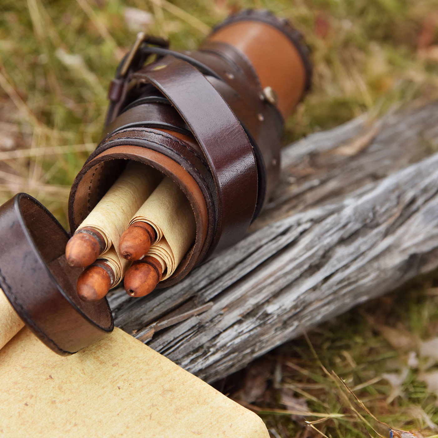 Römische Capsa aus Leder – Schriftrollenbehälter mit 3 antiken Rollen für LARP, Reenactment & Dekoration