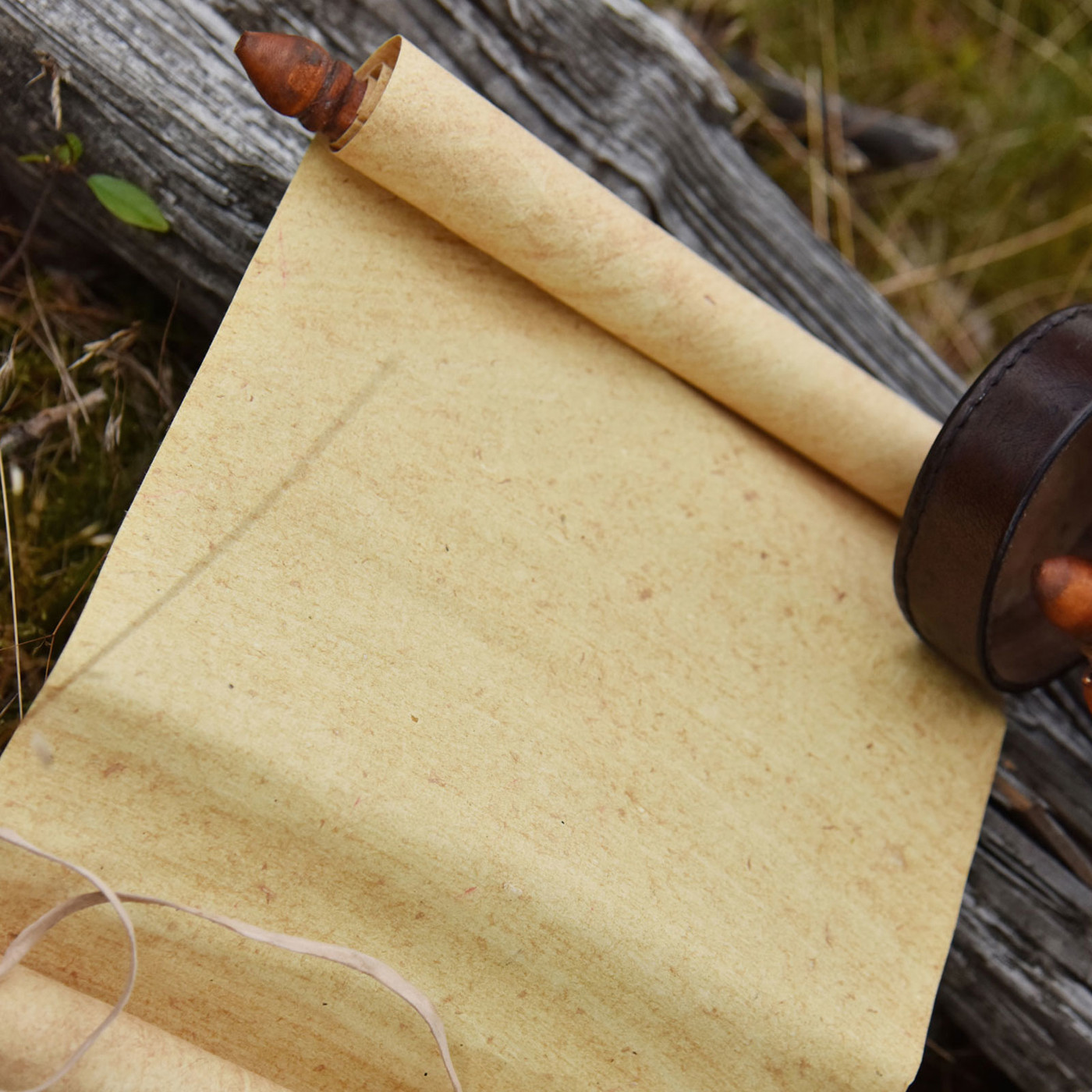 Inhalt: 3 Schriftrollen mit Holzstäben und Lederband