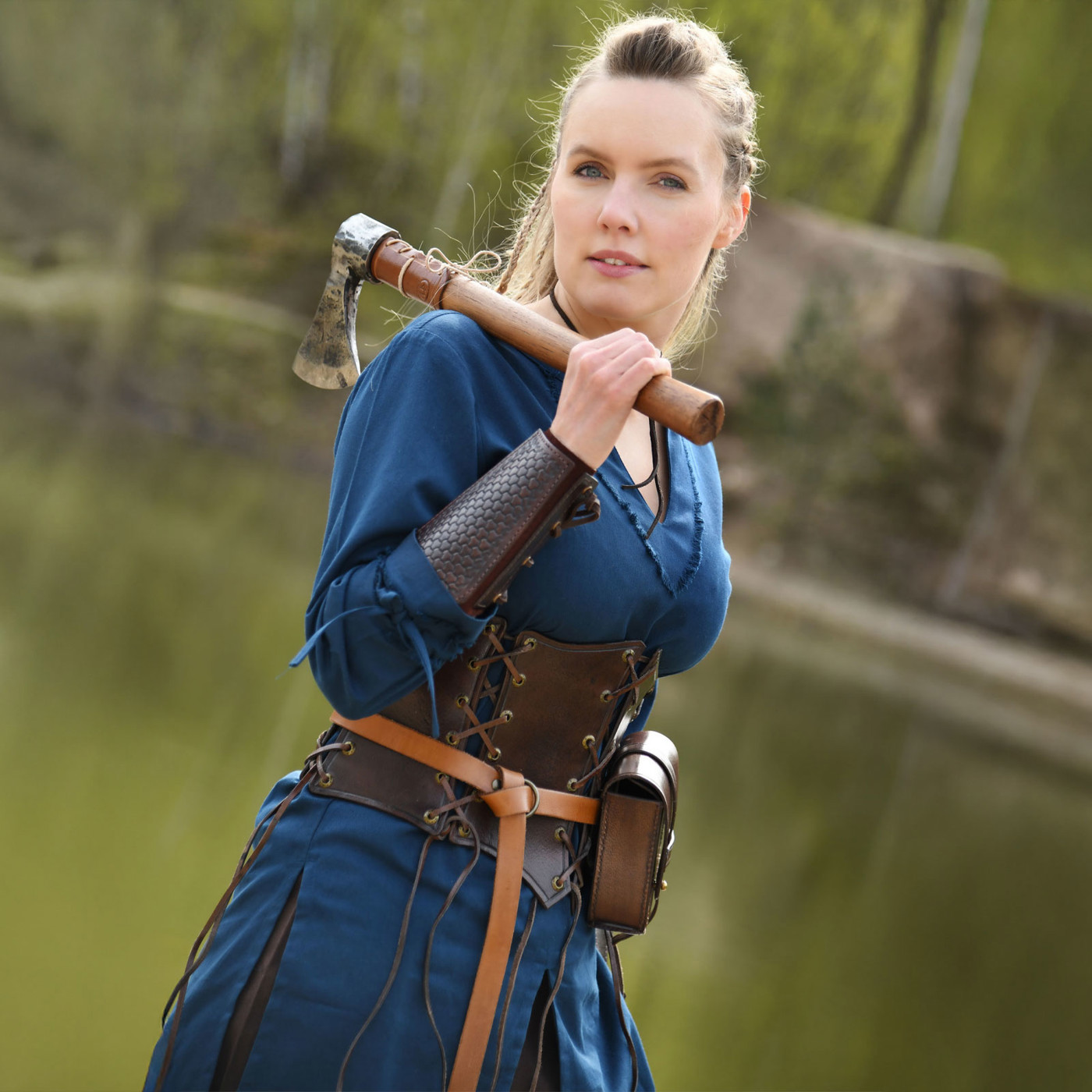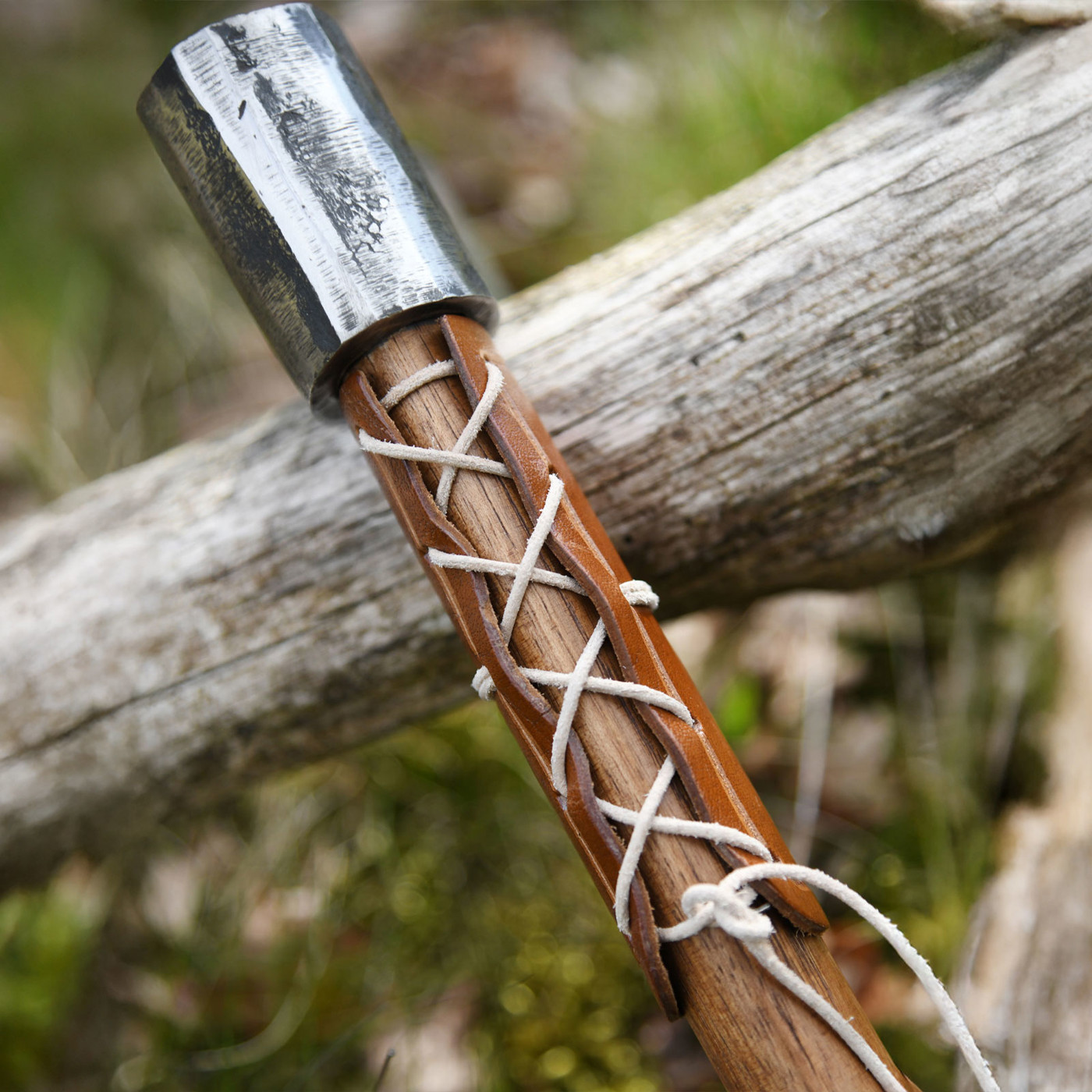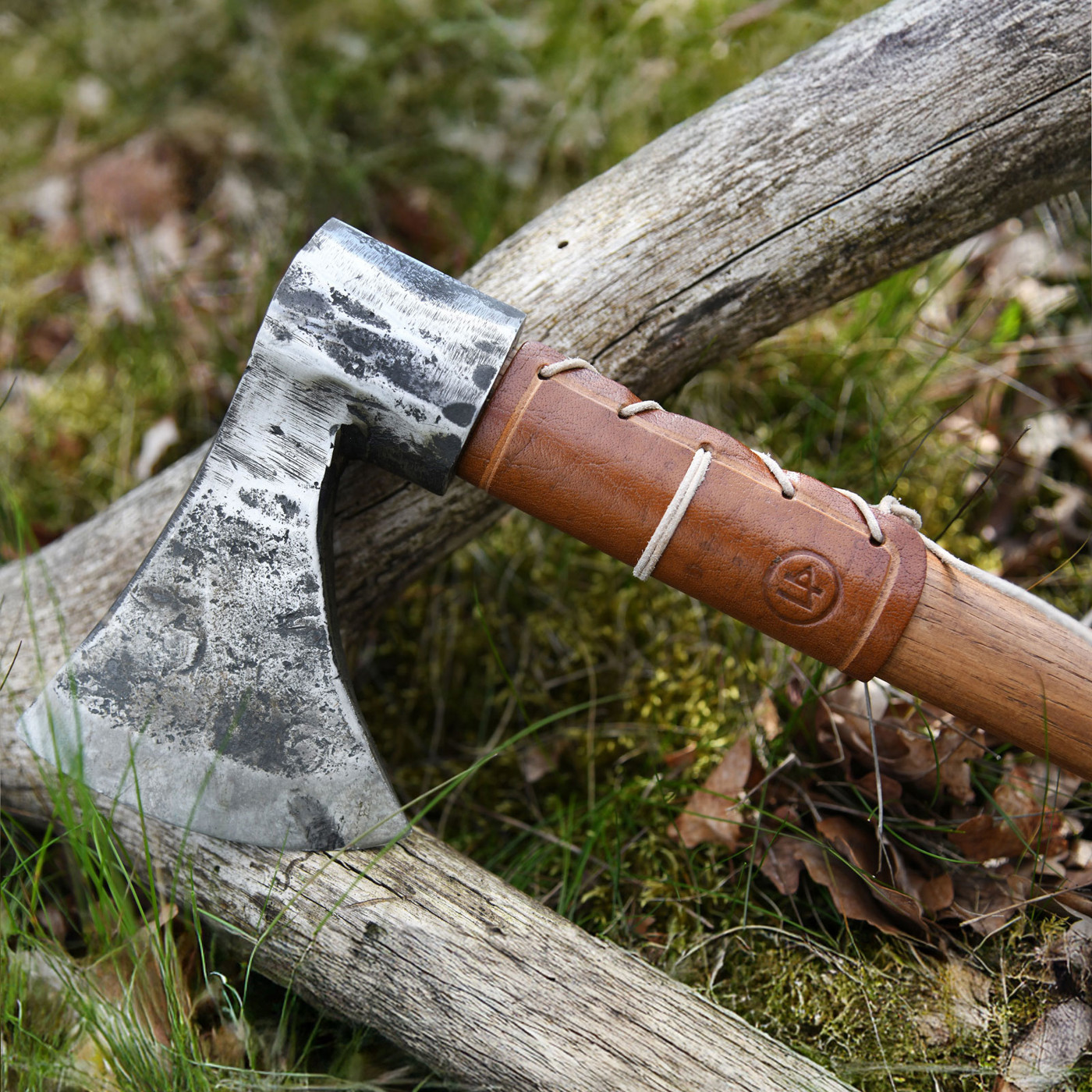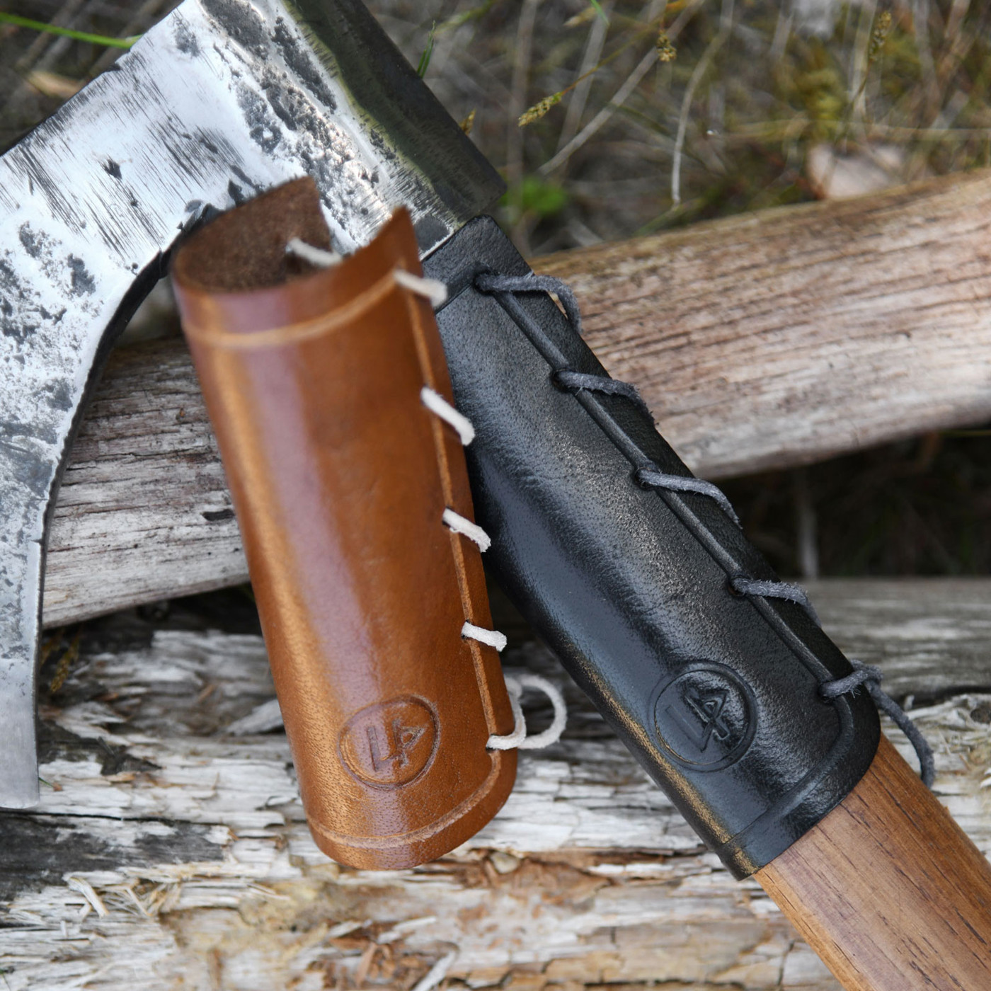 Das weiche, pflanzlich gegerbte Leder schmiegt sich perfekt an den Holzgriff an und wird mit einem robusten Lederband sicher verschnürt. So erhält deine Axt nicht nur Schutz, sondern auch einen unverwechselbaren, authentischen Charakter – ganz wie aus vergangenen Zeiten.