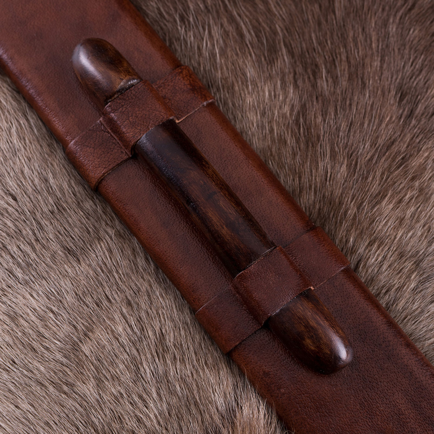 Scheide: Holz mit Echtlederbezug & Messingbeschlägen