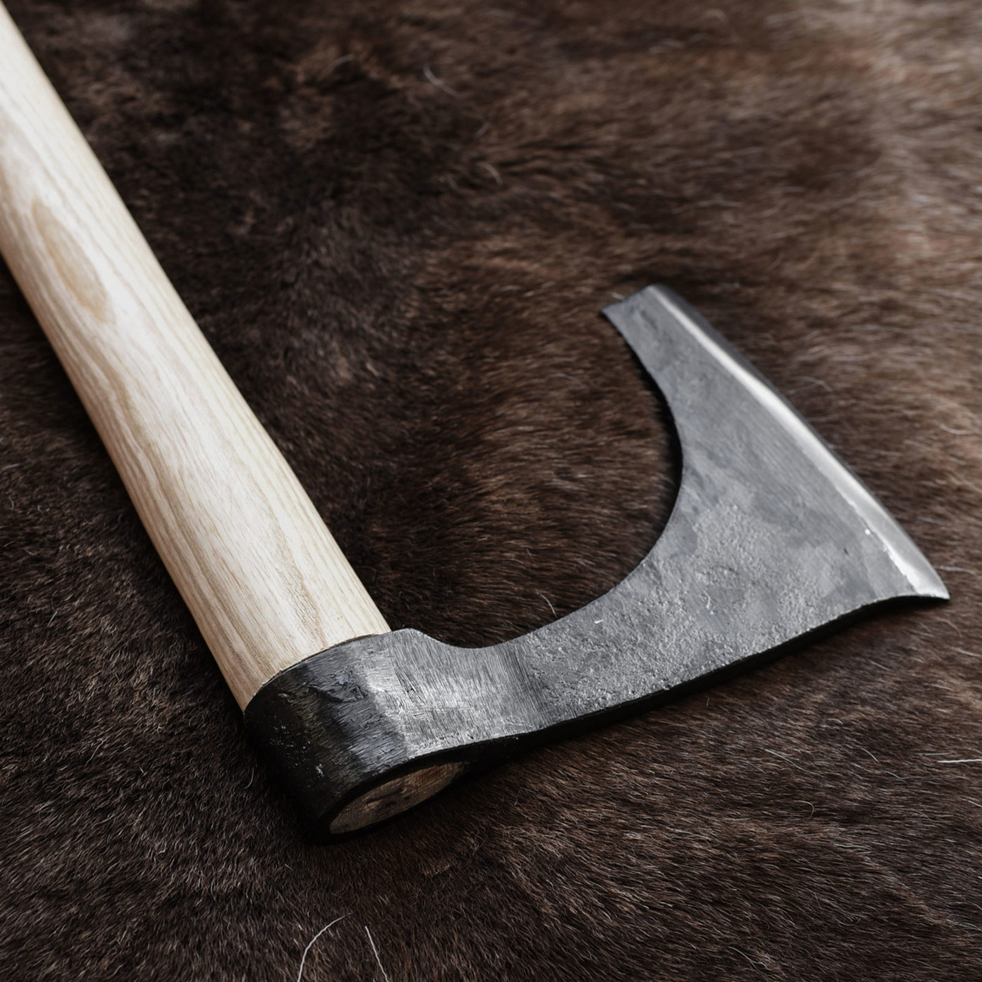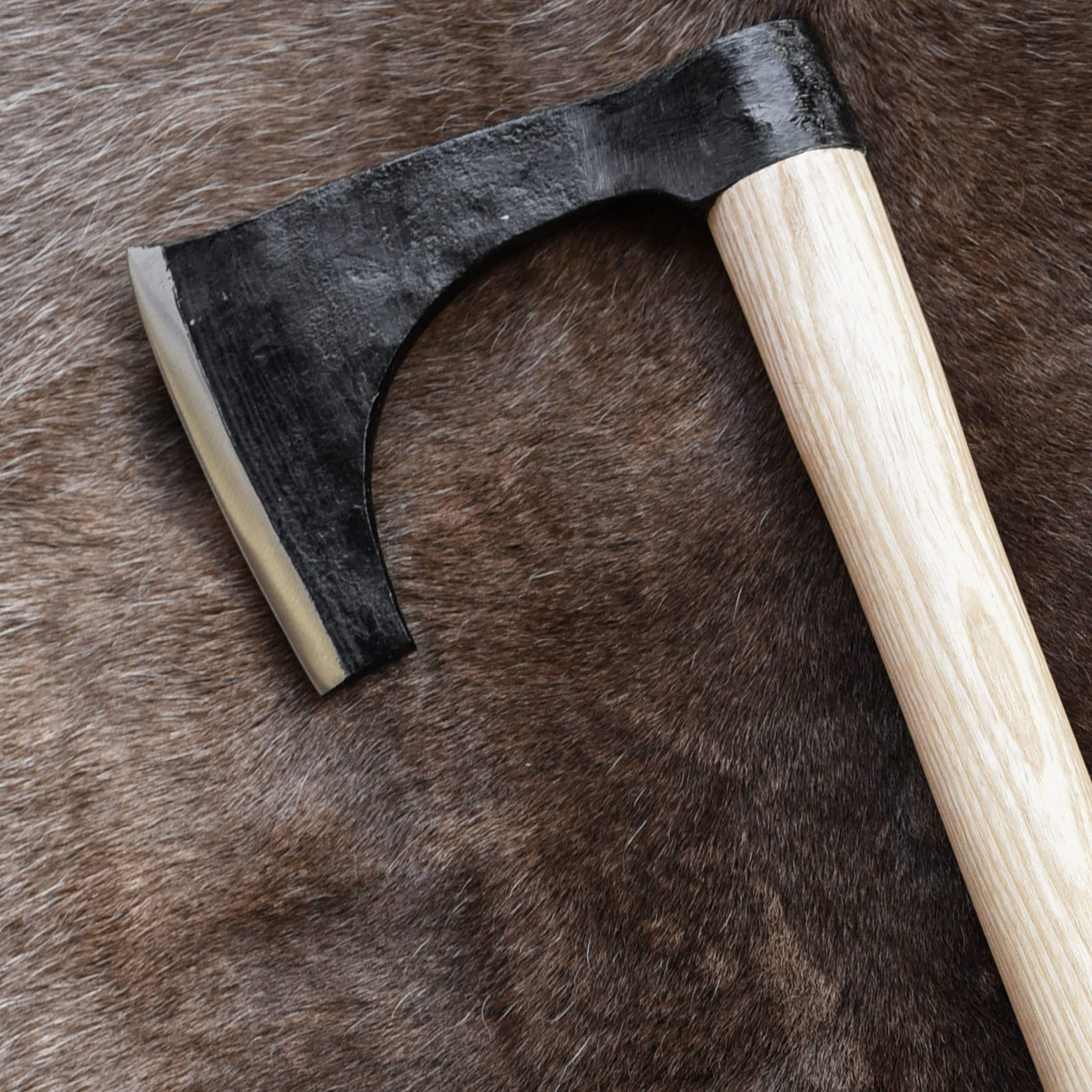 Diese moderne Nachbildung ehrt diese Tradition mit einem robusten, handgeschmiedeten Axtkopf aus Carbonstahl und einem stabilen, ergonomisch geformten Schaft aus Eschenholz. Ein echtes Sammlerstück für Geschichtsliebhaber, Reenactors und alle, die nordische Handwerkskunst zu schätzen wissen.