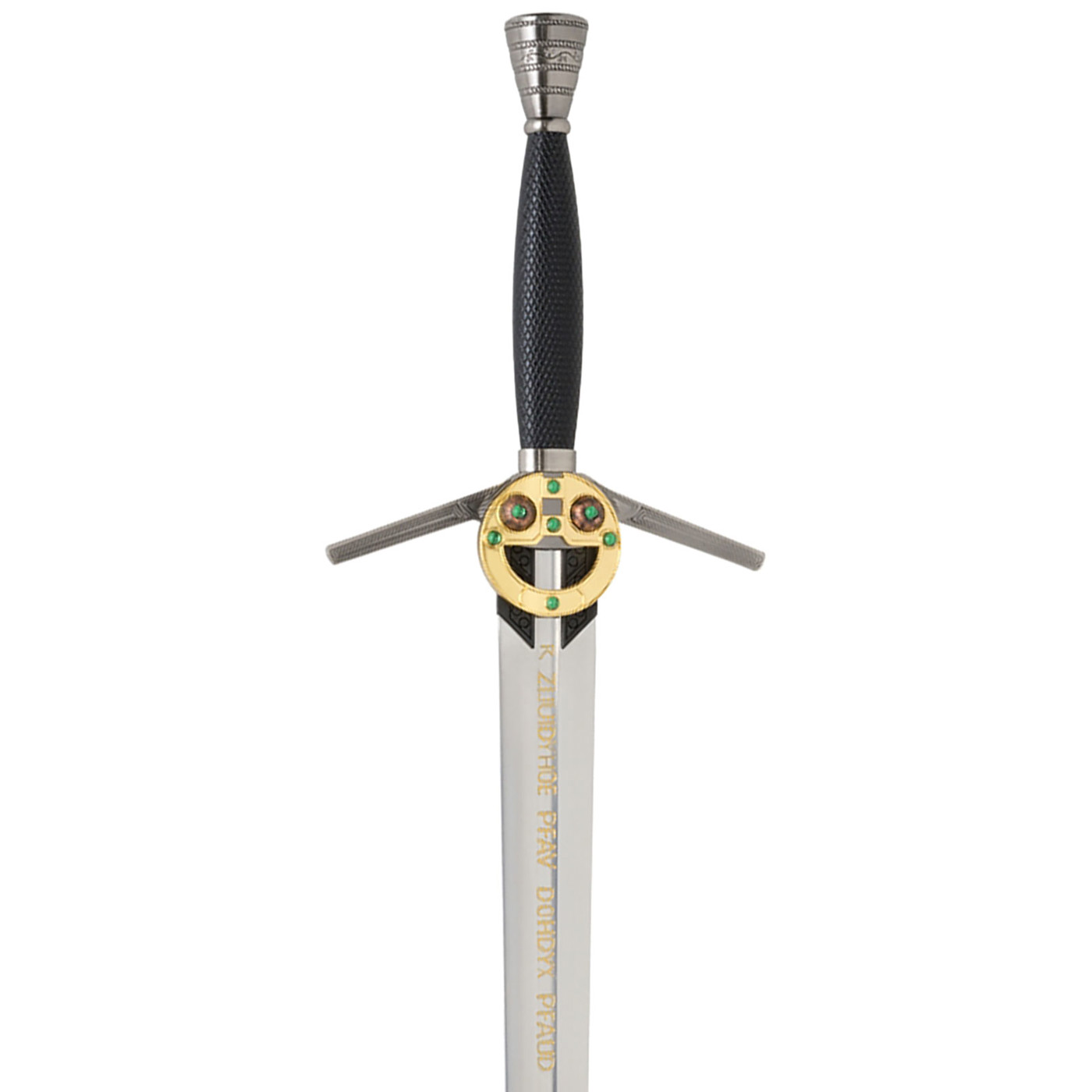 Die gravierte Inschrift auf der Klinge erinnert an die alten Tugenden der Hexer – Ehre, Disziplin und Entschlossenheit.